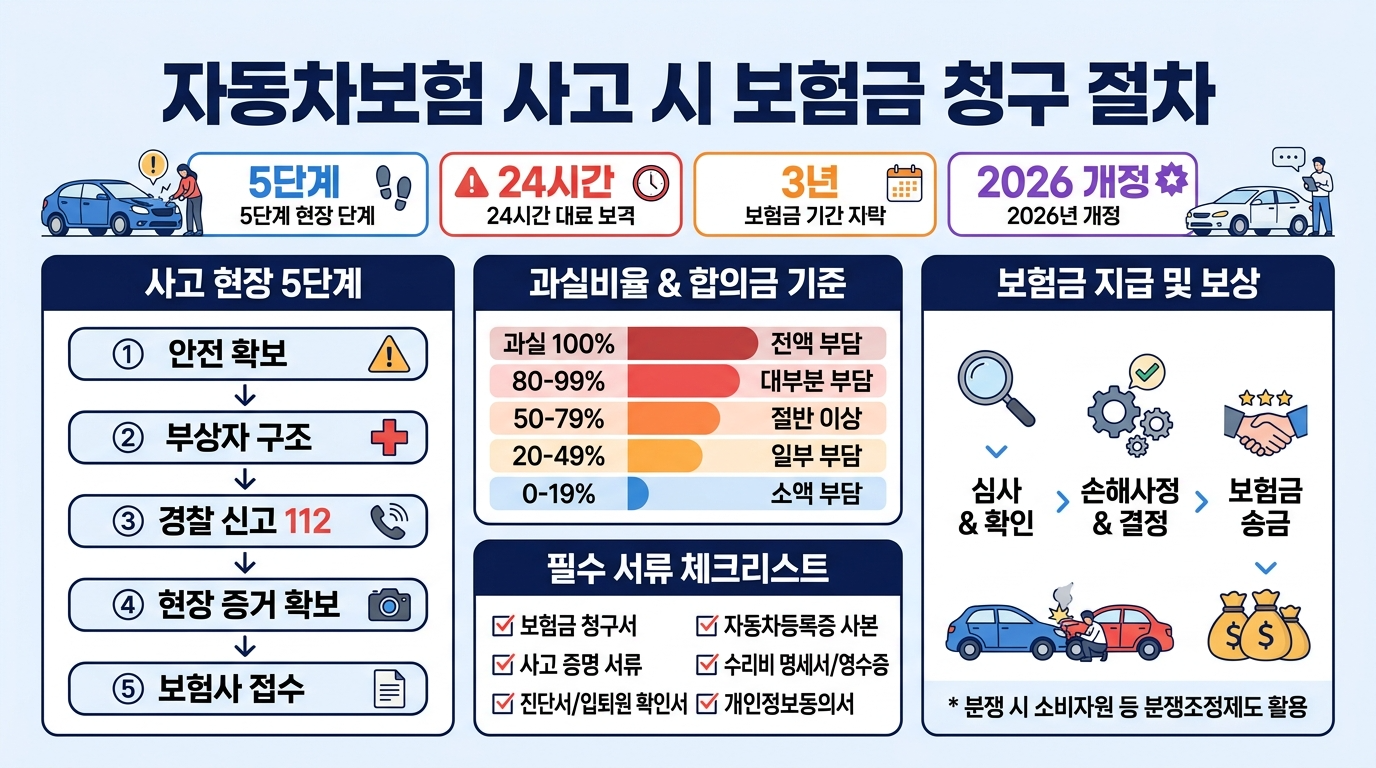 📌 Hub : 자동차보험 비교 추천 완벽 가이드 (2026) | Spoke ① 다이렉트 vs 대면 | Spoke ② 할인 특약 총정리 (예정) | Spoke ③ 보험료 절약법 10가지 | Spoke ④ 보험금 청구 절차 ◀ 현재 글 | Spoke ⑤ 갱신 시 주의사항 (예정)