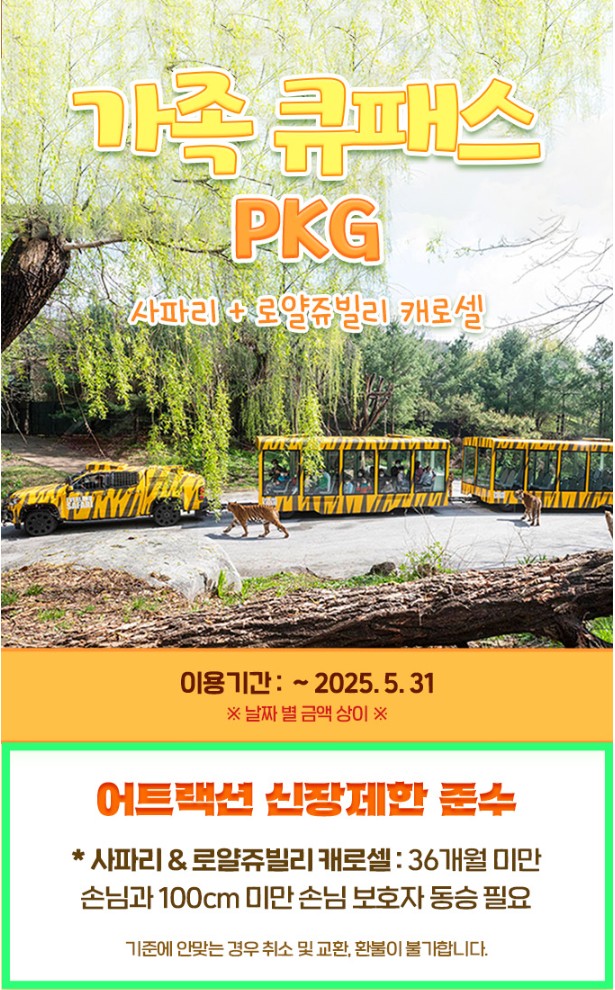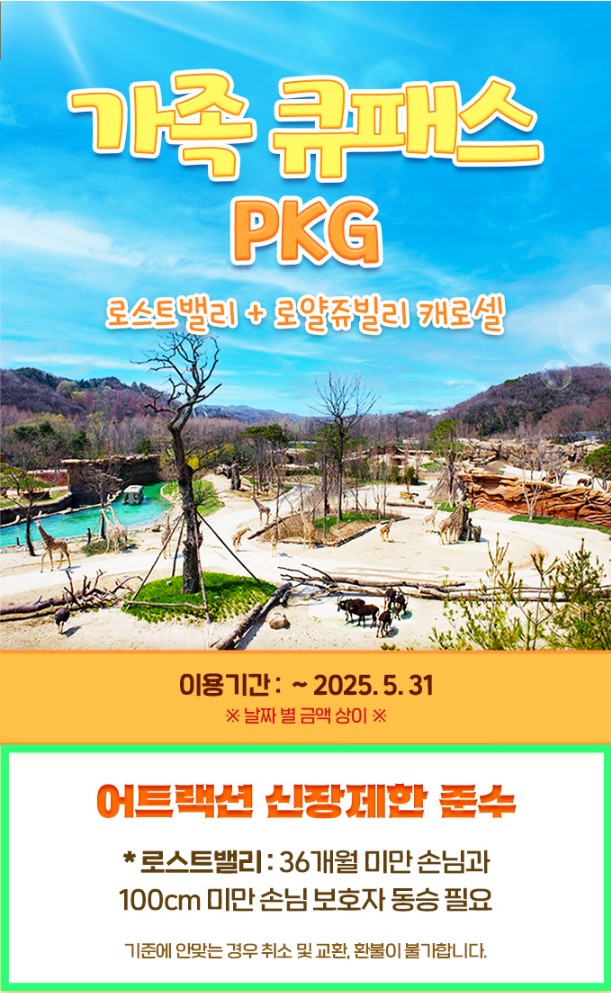 - 로스트밸리 또는 사파리 택 1 + 캐로셀 (대인 1 + 소인 1 또는 대인 1 + 소인 2)