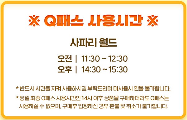 주의: 큐패스 가격은 매달 변동될 수 있으므로, 반드시 에버랜드 앱 또는 홈페이지에서 당일 가격을 확인해야 합니다. 또한, 큐패스는 자유이용권과는 별도로 구매해야 하는 경우가 많으니 이 점을 유의하세요. 일부 패키지에는 자유이용권이 포함되어 있기도 합니다.