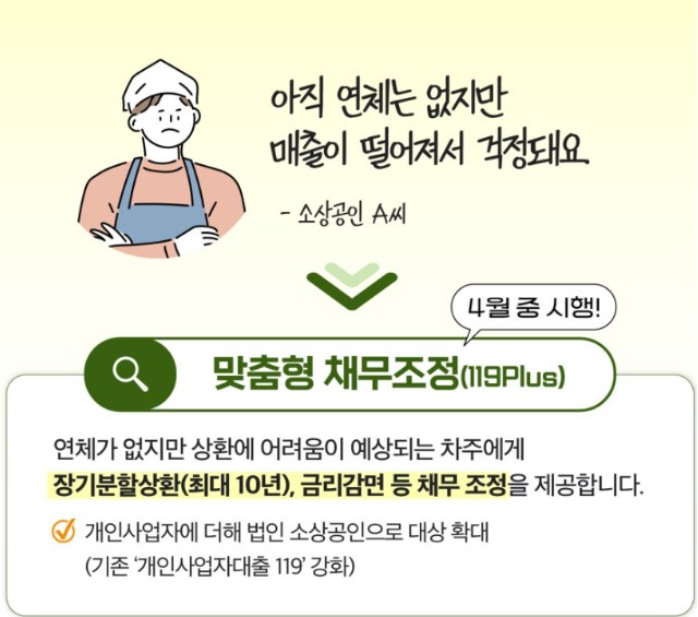 2025년 4월 18일부터 전국 은행권에서 본격 시행 중인 ‘소상공인 119 플러스’ 채무조정 프로그램은 코로나19 이후 경기 침체와 고금리 상황으로 인해 경영에 어려움을 겪는 소상공인들을 대상으로 맞춤형 금융 지원을 제공하기 위한 대책입니다.