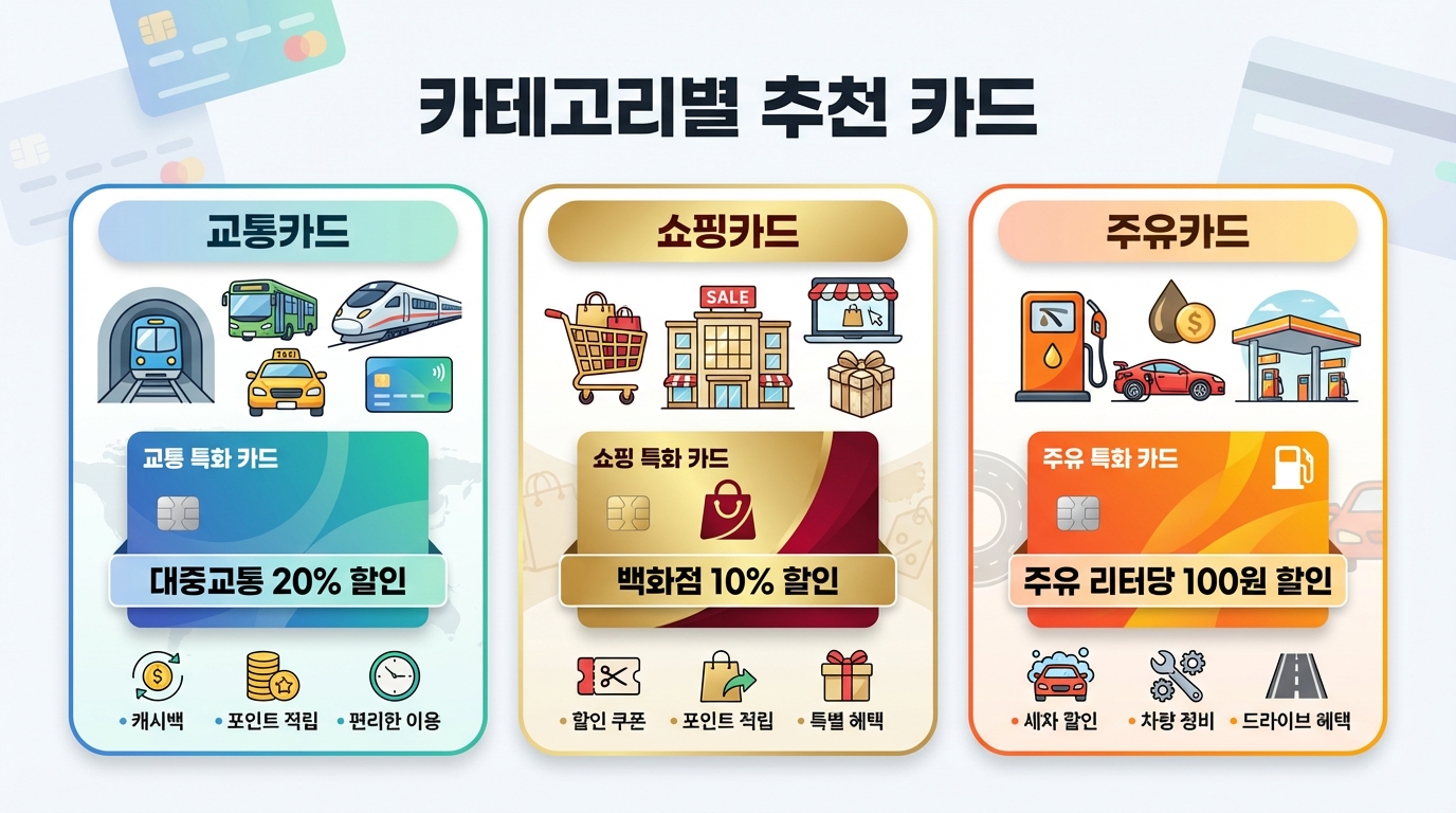 🎯 카테고리별 추천 카드
