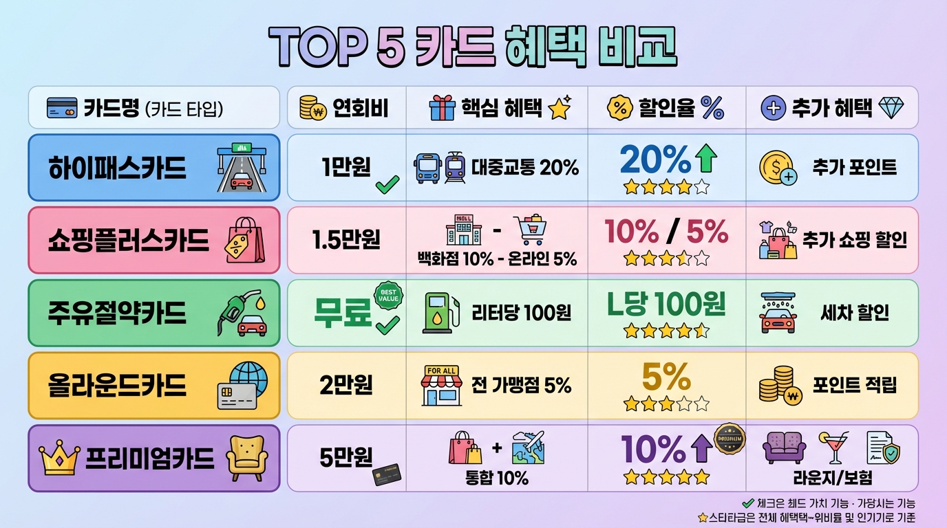 🏆 2026년 신용카드 혜택 TOP 5