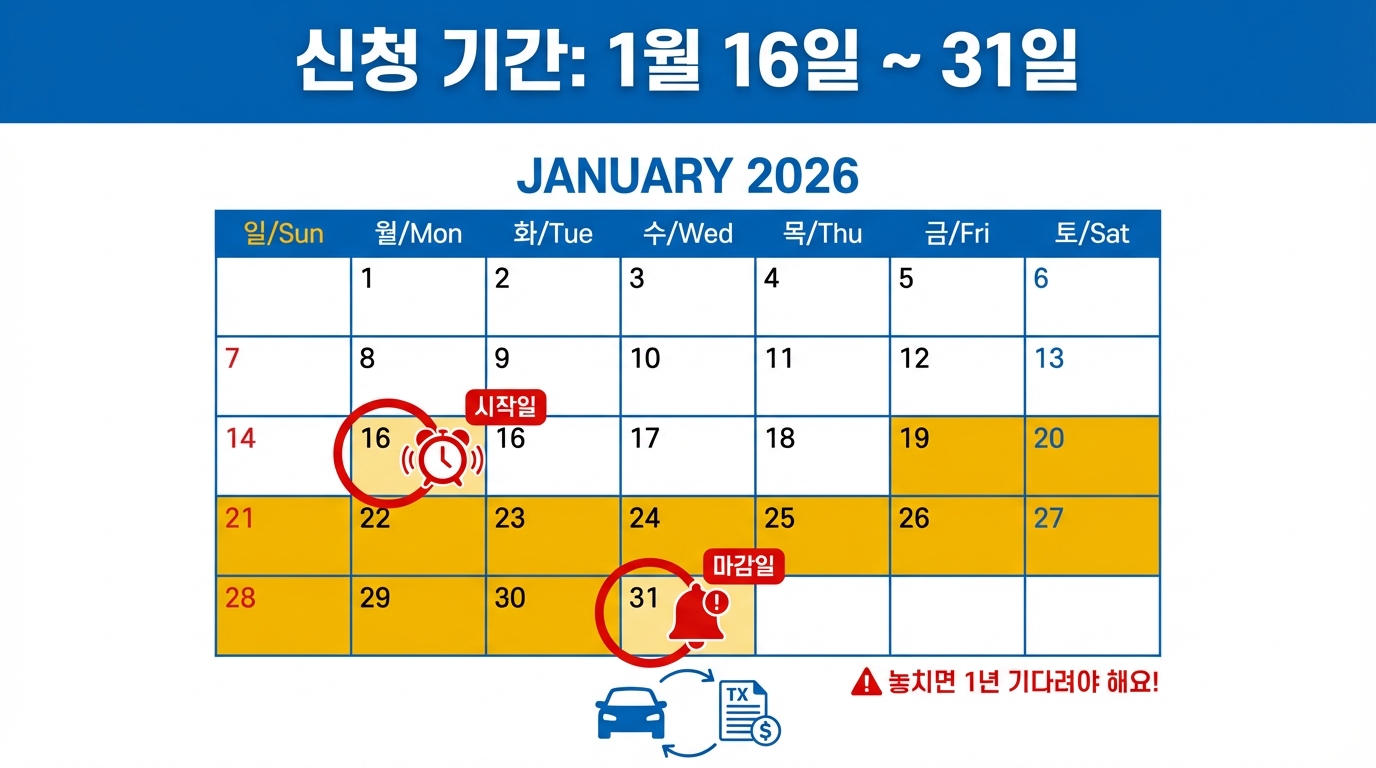 "나중에 하지 말고 지금 바로!" 달력에 표시해 두시고, 1월 16일 첫날 신청하시면 가장 확실합니다.